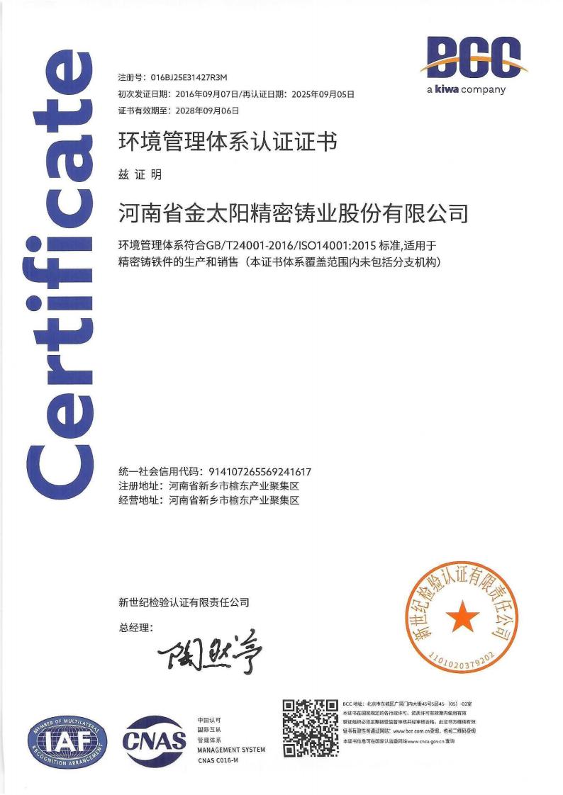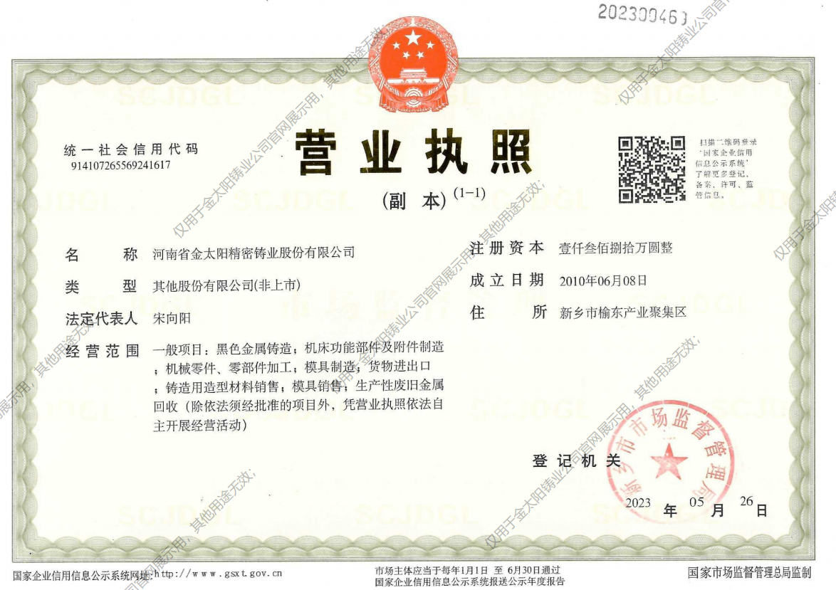 • 河南省金太阳精密铸业股份有限公司