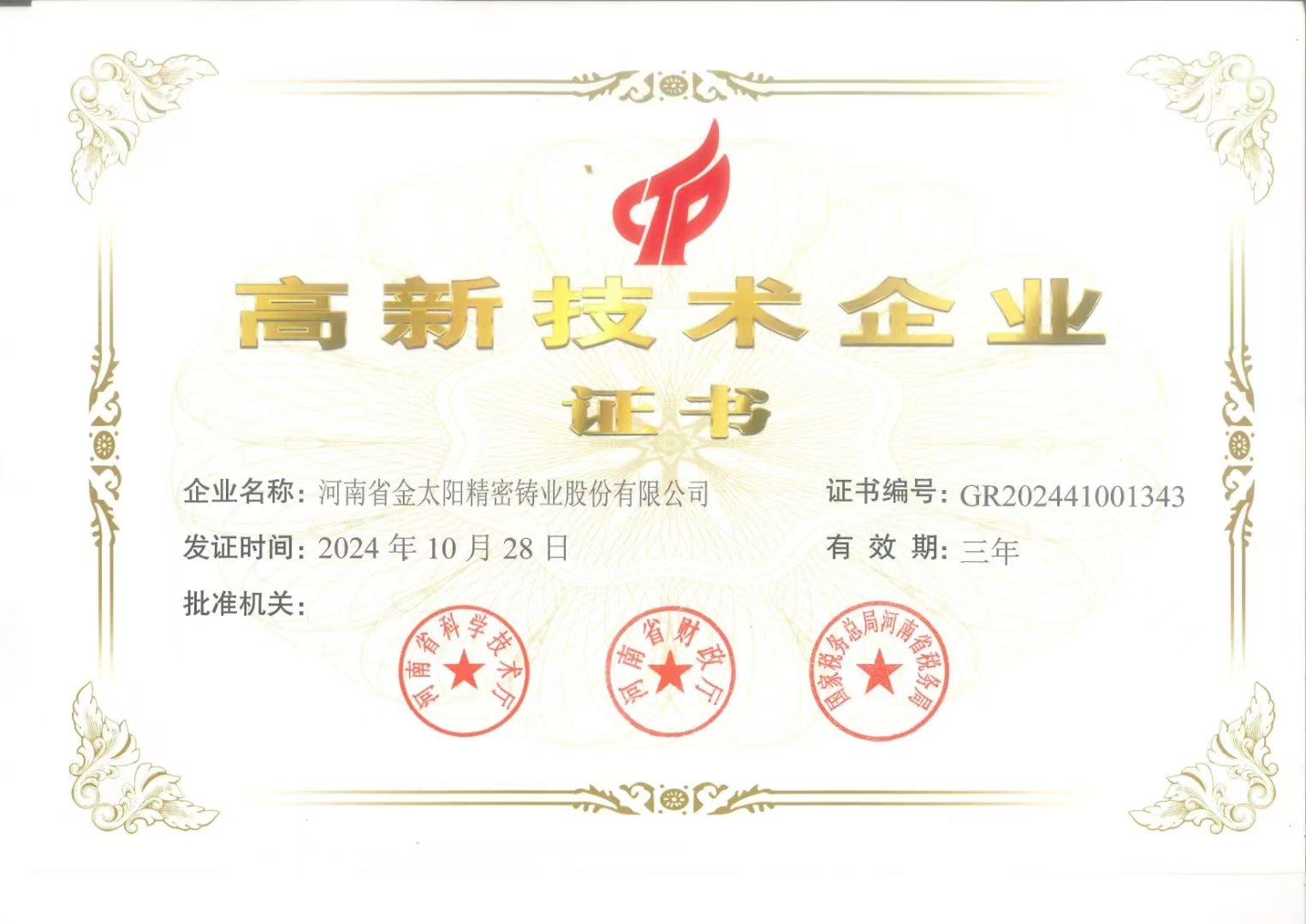 河南省金太阳精密铸业股份有限公司